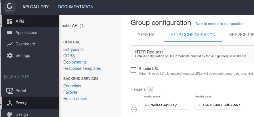 For dette eksempelet vil Header se slik ut i Gravitee: